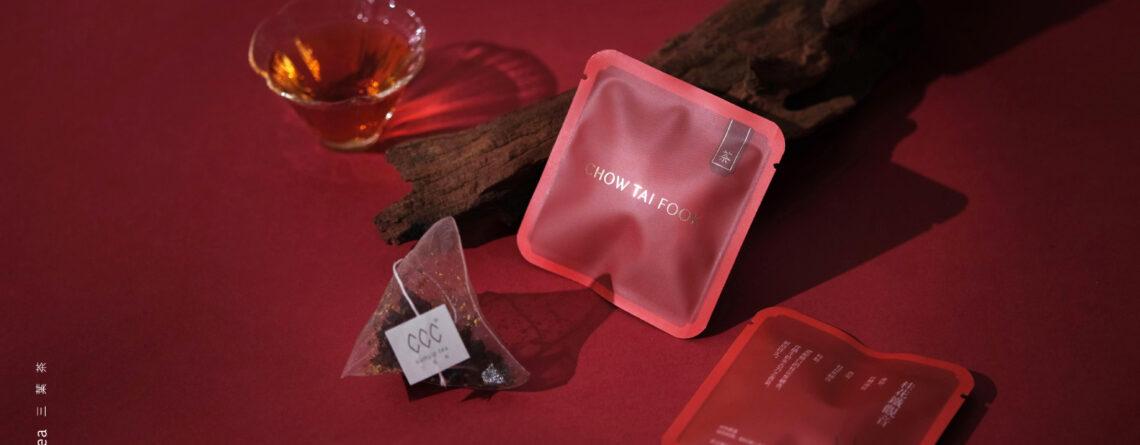 周大福 × 三葉茶 | 新春企業訂製茶包 – 專屬Logo紅色茶包袋,喜慶輕奢禮贈